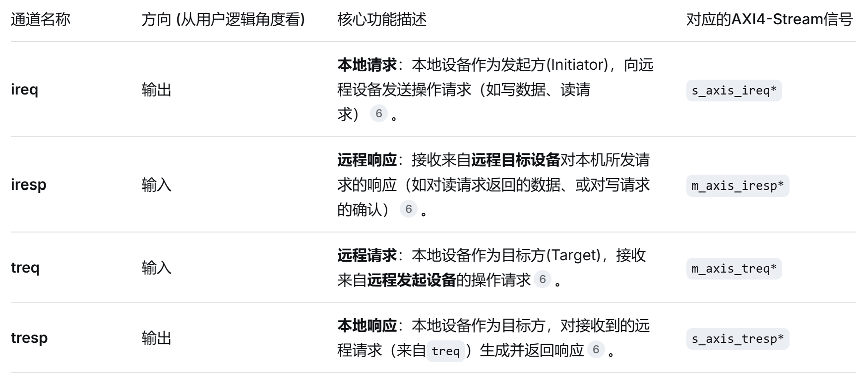 Initiator/Target 模式 :这是分离通道模式。如果你选择了此模式,那么四个通道都是必要的,因为它明确将请求与响应、发起方与目标方的通路分开设计,以实现更灵活的控制。