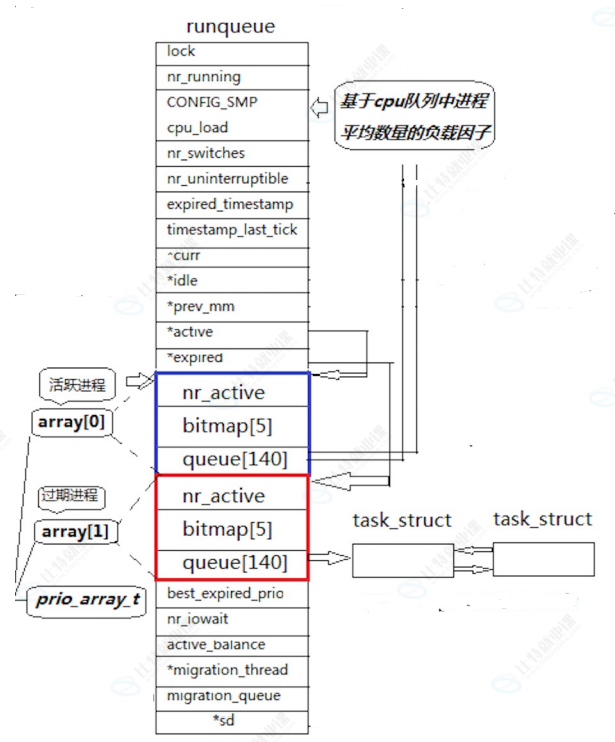 *active/*expired:指向优先级数组队列(活跃/过期队列)