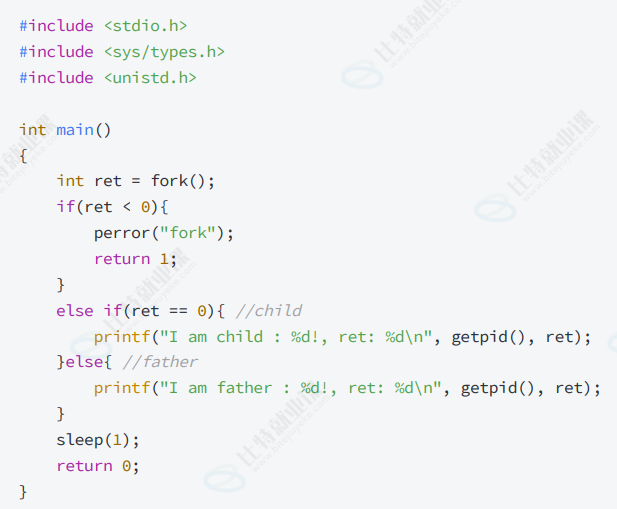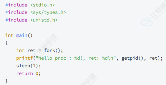 fork后父子进程都会各自执行的后续的printf和Sleep,但是父进程的ret是子进程的 id,而子进程的ret会是0以此表示fork成功
