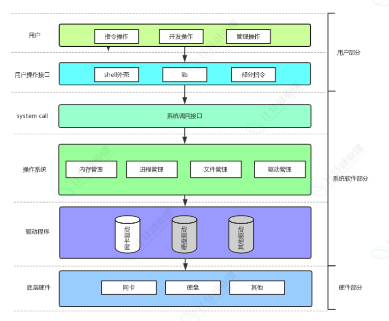 ①:内核(进程管理、内存管理、文件管理、驱动管理)