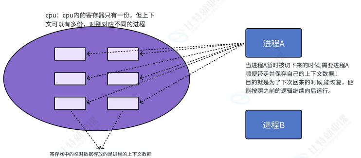 ⑥上下文数据:进程执行时处理器的寄存器中的数据