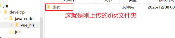 ②将生成的dist文件夹,上传到linux服务器(替换旧dist文件夹即可)