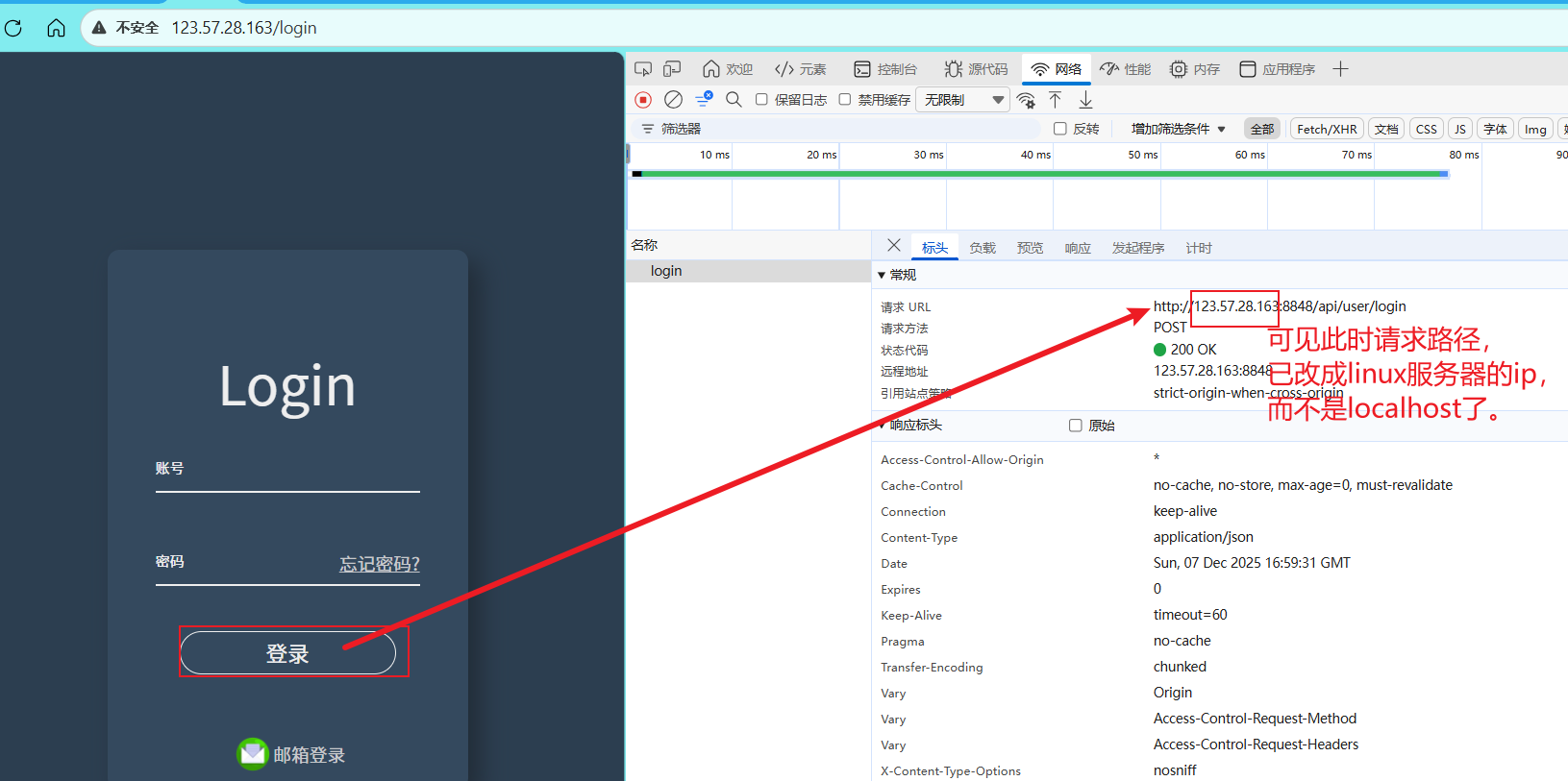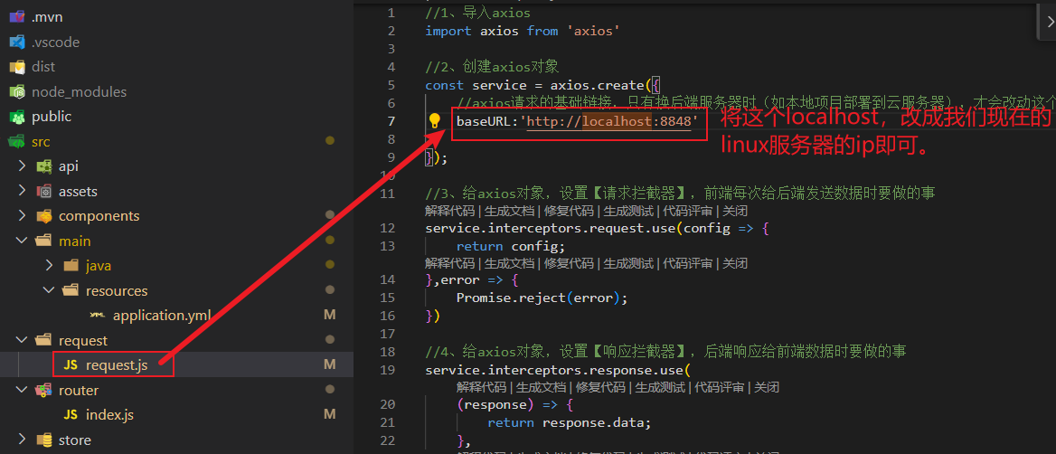 但是前端项目的请求路径还是localhost,我们要将这个改成现在linux服务器的后端服务。