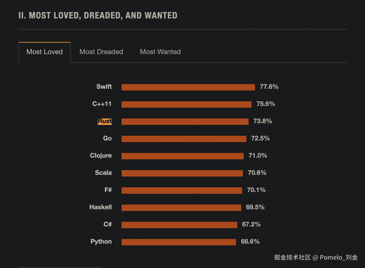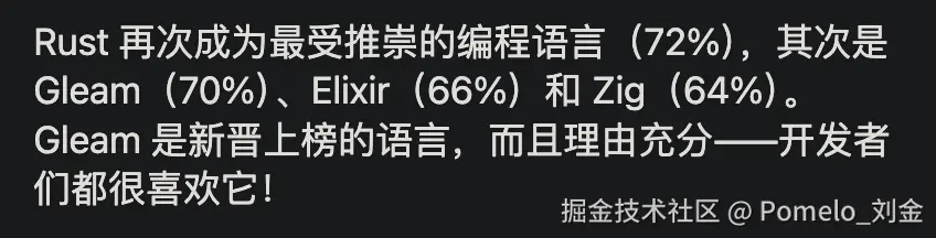 至此 自 Rust 2015 年 5 月发布以来, 从2016-2025年 连续 10 年并持续霸榜成为用户满意度最高的语言。