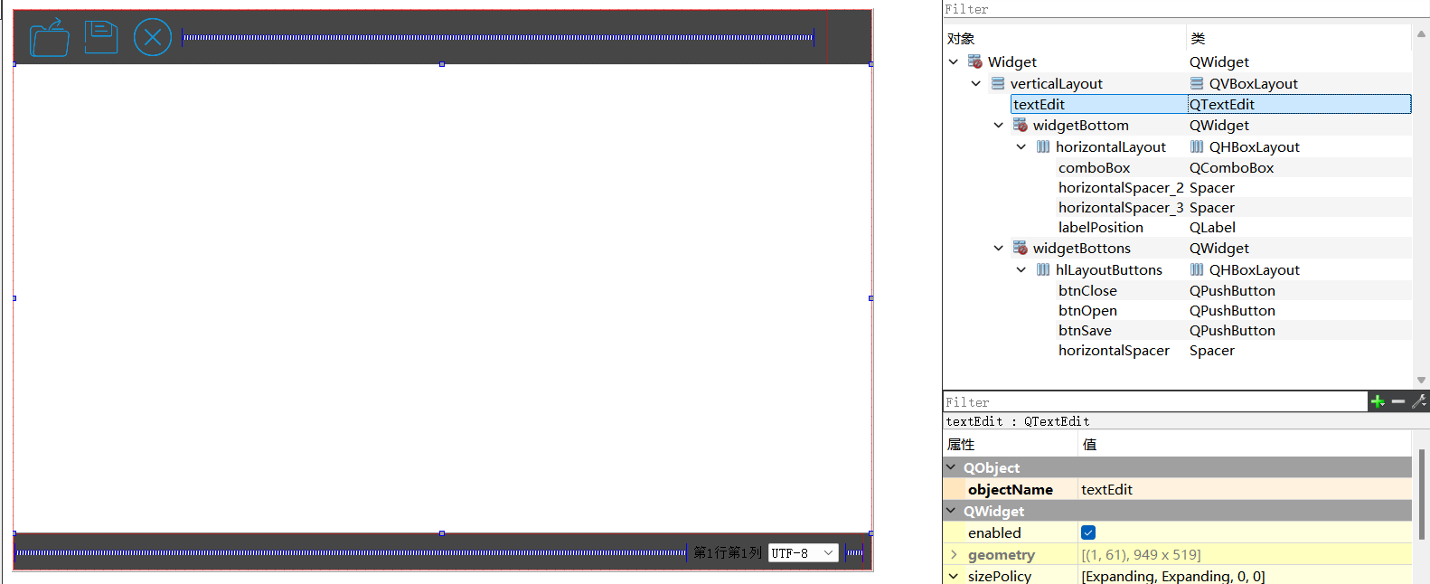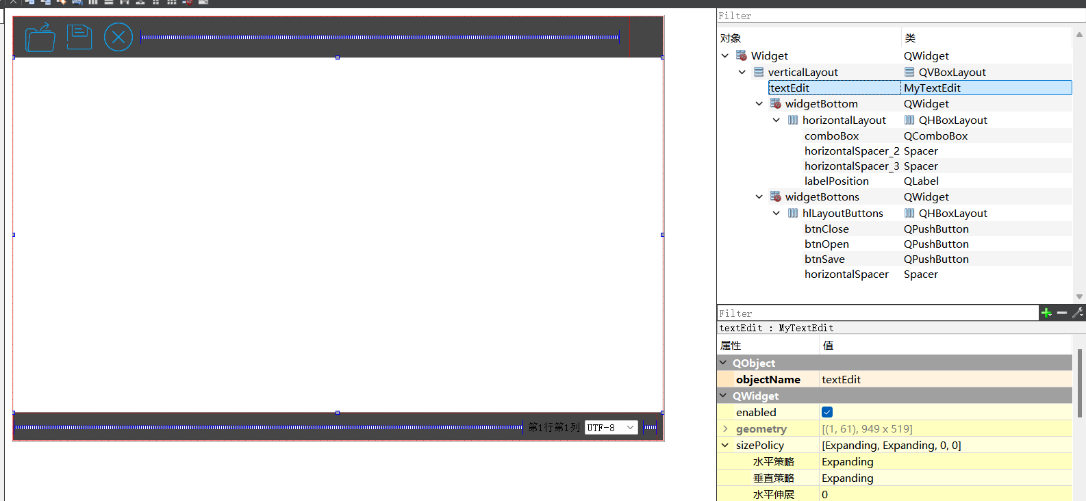 //建立QTextEdit父空间,需要ui上面的textedit和自定义的MyTextedit关联上,不然会失去联系