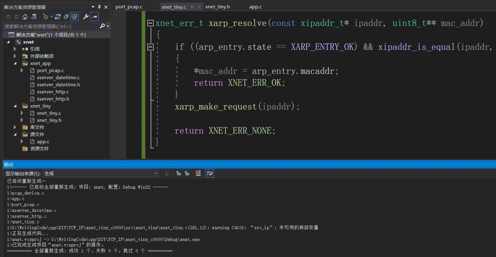 首先添加错误码XNET_ERR_NONE表示缺少ARP表项