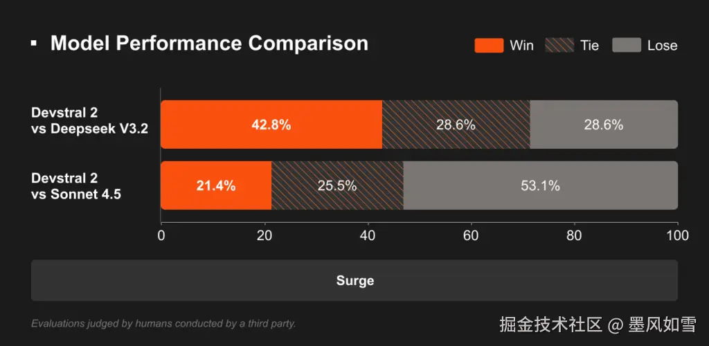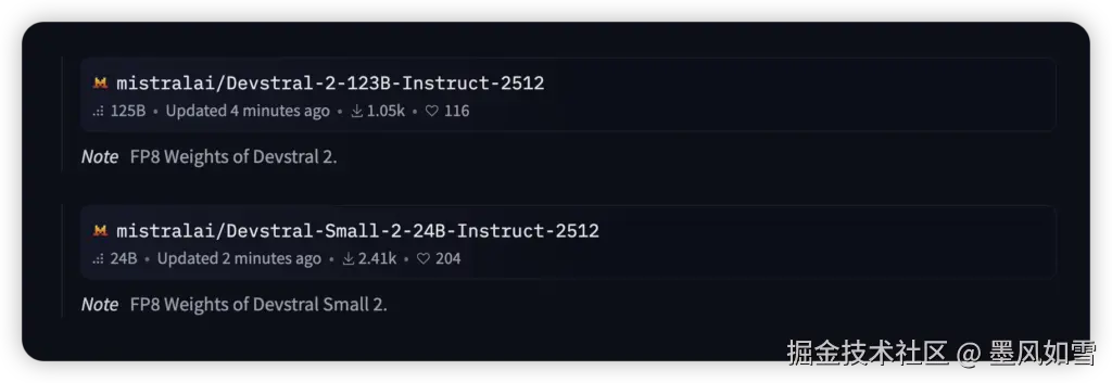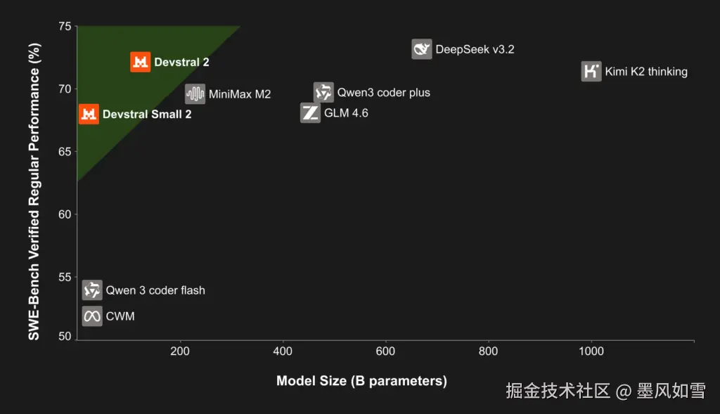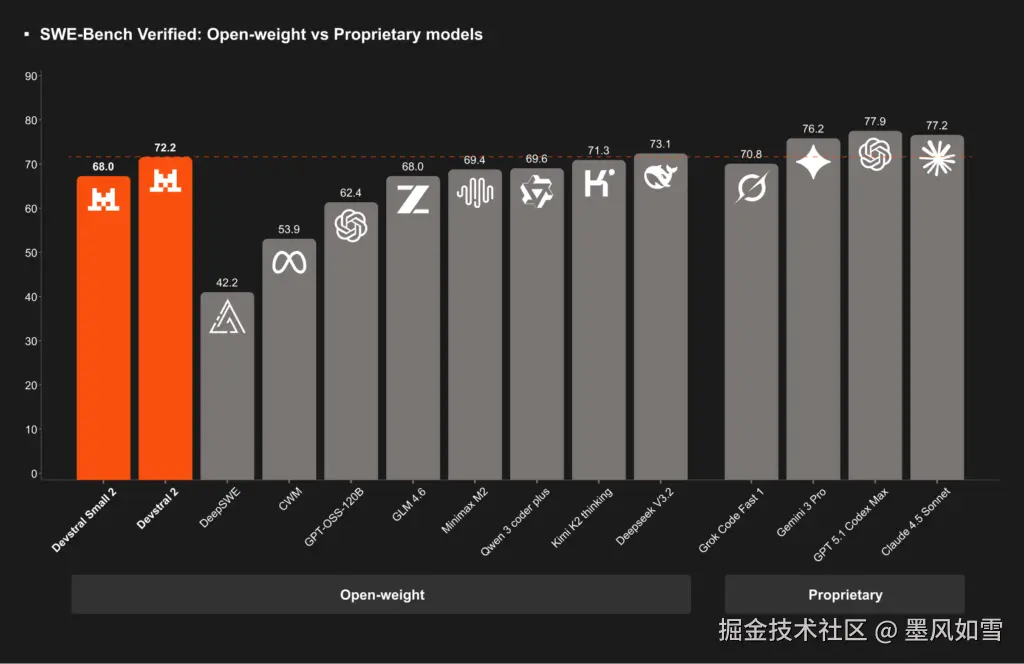 这次发布不仅仅是丢出两个权重文件那么简单,Mistral 显然是看准了现在最火的"Agentic Coding"(代理式编程)赛道,试图用开源方案去动一动闭源巨头们的奶酪。