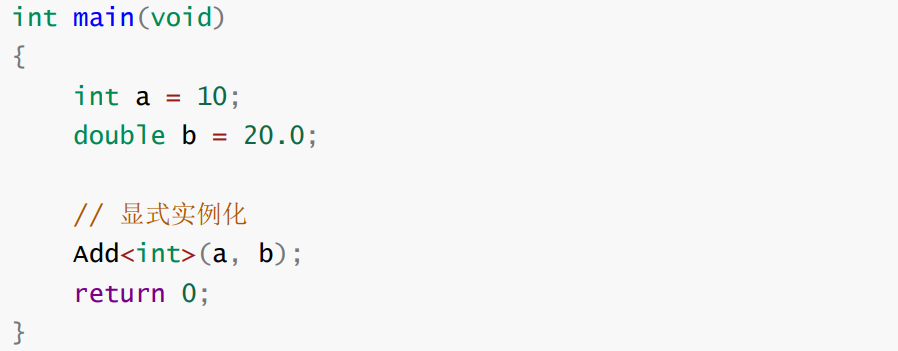 cout << Add<int>(a, b) << endl; //模板函数可以生成更加匹配的版本