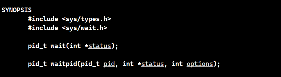 pid_t retpid = waitpid(id, &status, 0); // 子进程退出前,父进程一直阻塞在这里