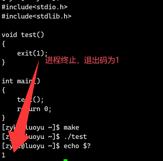 当一个进程正常终止后,在Linux系统中我们可以用命令echo $?查看上一个进程的退出码!