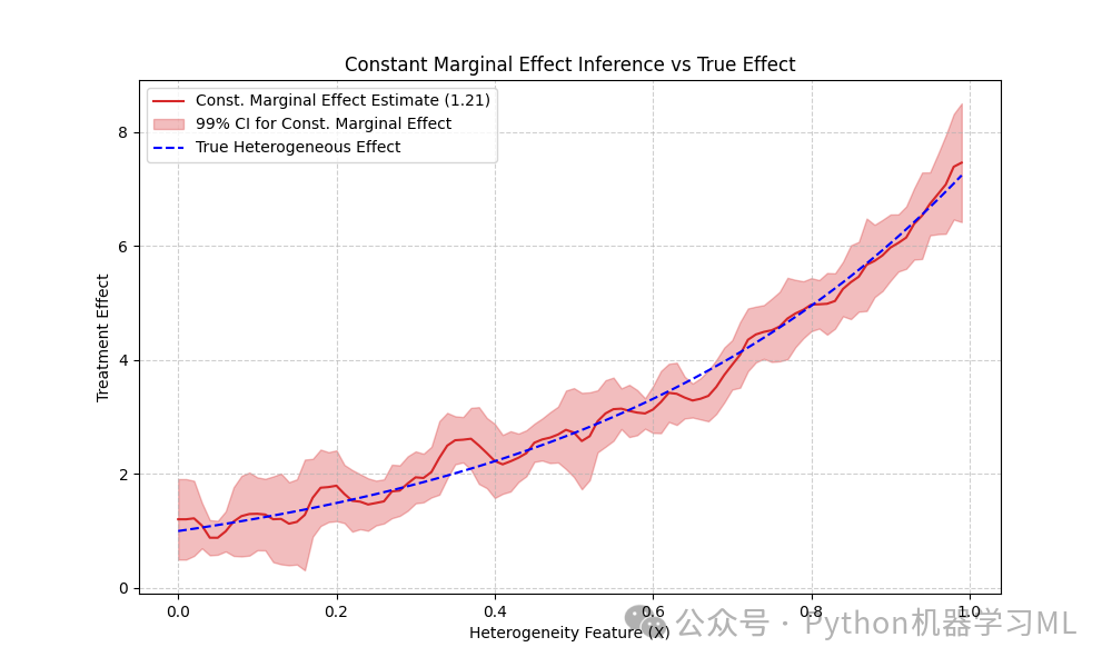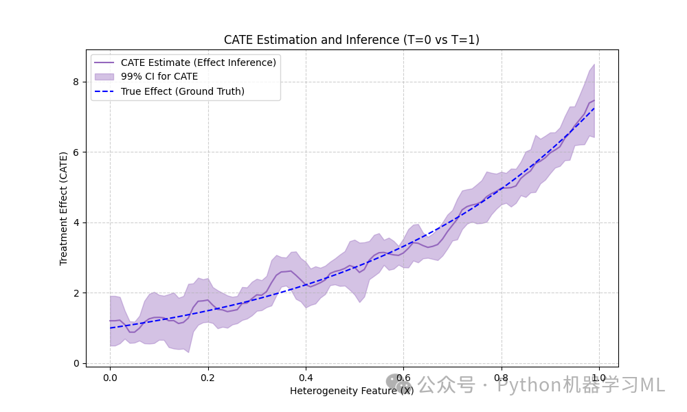 effect(X_new)方法估计在新数据点X_new(或者原始数据X)上的条件平均处理效应。 -