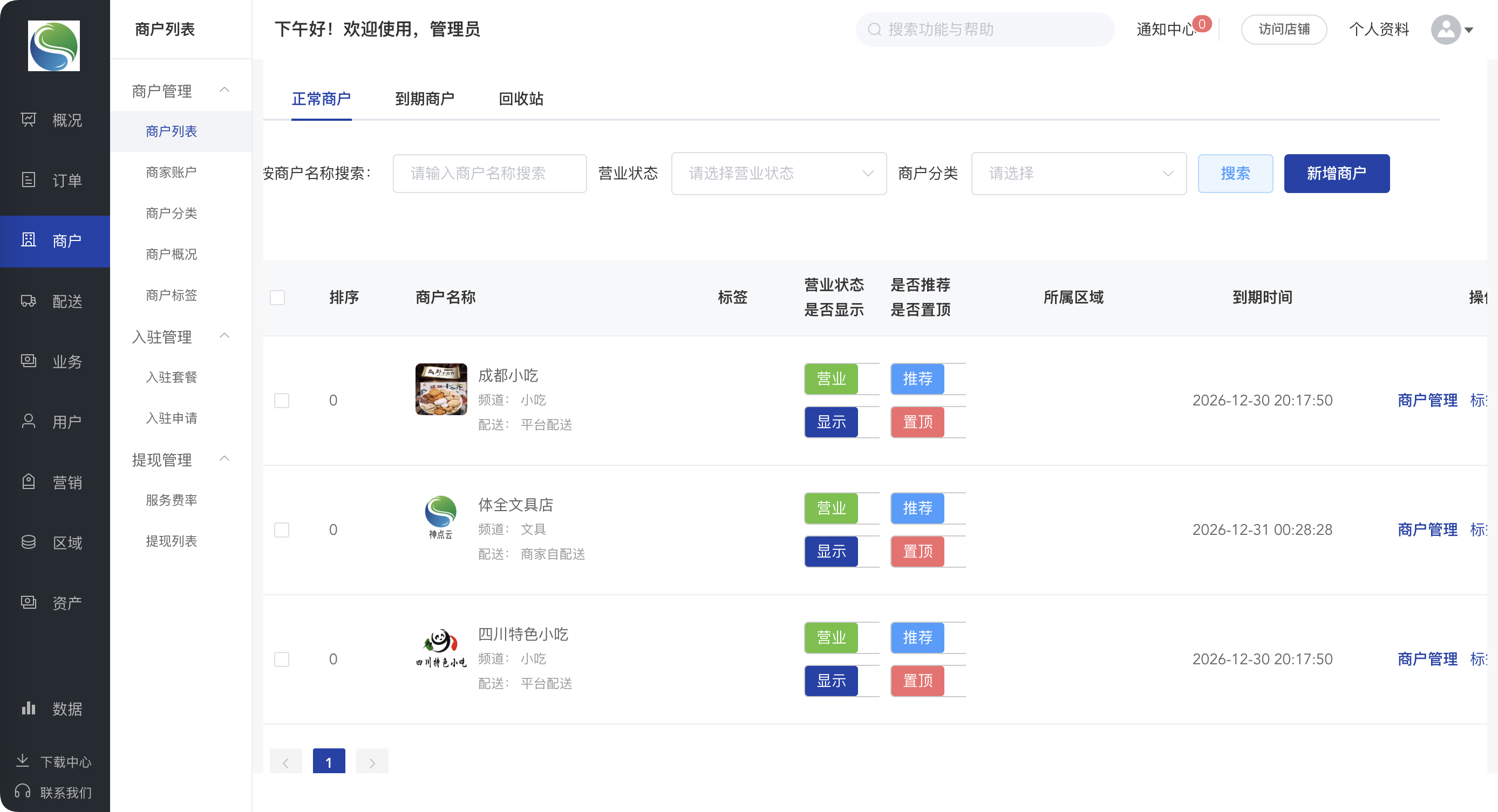 为平台运营商或连锁品牌总部提供的一站式、数据化、可视化的集中管理后台,实现对商户、骑手、订单、资金、区域的全面掌控与精细化运营。