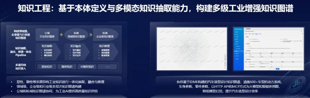 3.知识工程:通过面向多模态的工业知识抽取工具集和流水线,构建全场景(IT/OT/ET/KT)数据全联接全融合的工业增强型知识图谱,沉淀行业Know-How,通过智能体实现电子电路领域设计规则审查、汽车系统架构智能生成等应用,缩短研发周期并提升准确性。