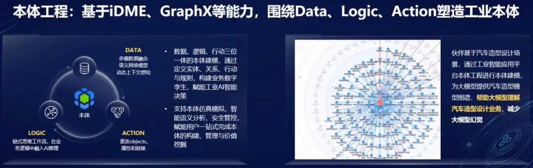 举个例子:伙伴基于汽车造型设计场景,通过工业智能应用平台本体工程进行本体建模,为大模型提供汽车造型模型图谱,帮助大模型理解汽车造型设计业务,减少大模型幻觉。