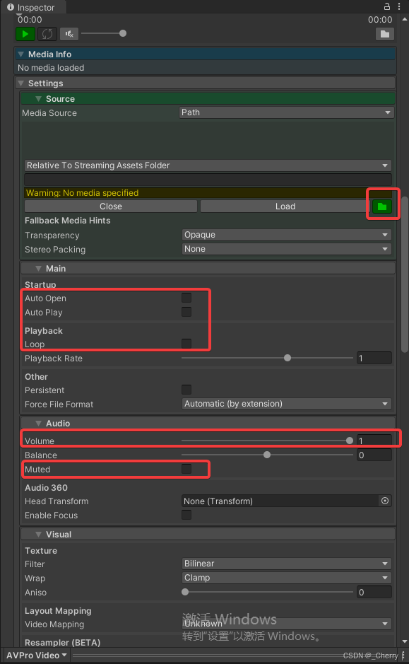 注意Auto Open是开始就就打开准备视频,但不播放。