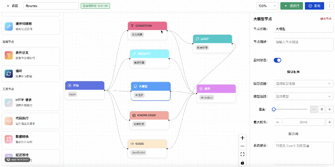 我最初设计 flowmix/flow 目的是让它实现自动化 AI Agent 生成, 后面越研究越发现它可以做的事情还很多, 所以为了让大家更快的感受 flowmix 的能力, 我先做了一个流程编辑器, 也就是 flowmix/flow, 我基于它设计了几个典型编辑场景, 这里给大家分享一下.