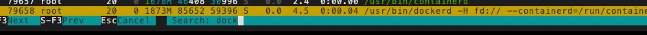 使用htop可以看到docker成功运行(注:通常服务器崩溃是因为内存爆了,因此可以多看htop看内存占用同时把大占用进程删了,htop可以直接鼠标点击使用)