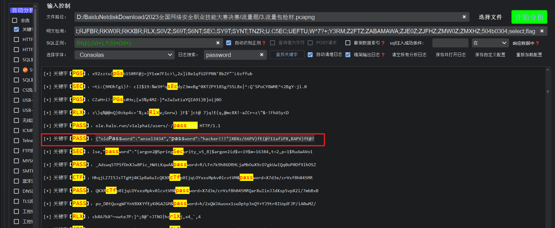 用netA直接关键词搜索 然后在日志里面搜索一下password 可以发现这里记录了oldpassword
