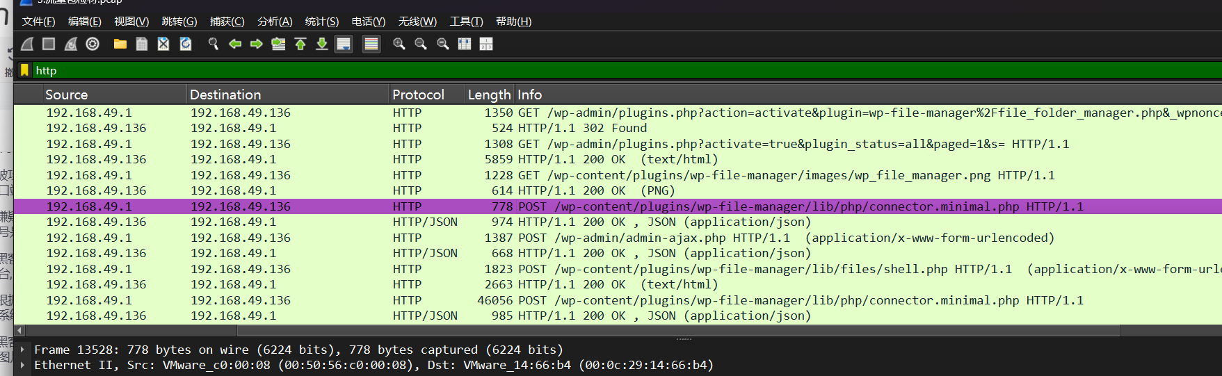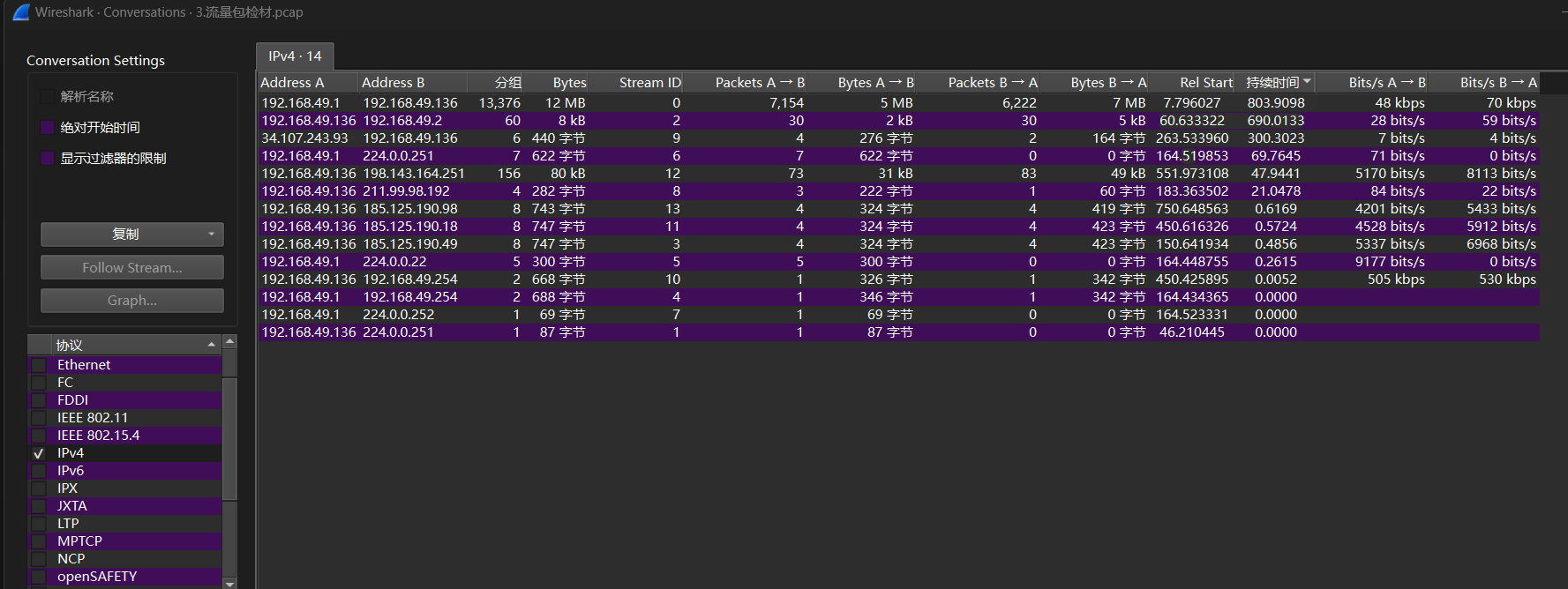查看一下会话的信息就可以看大概分析出来 攻击者和被攻击者