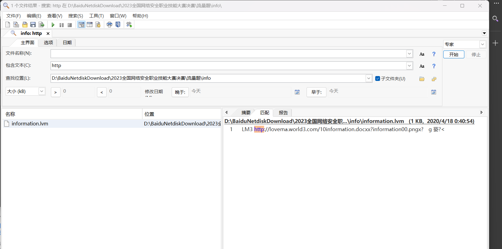 5.(检材3分析)已知邮箱附件中有一个lvm文件,请填写里面的URL信息。(参考格式:http://a.com/)