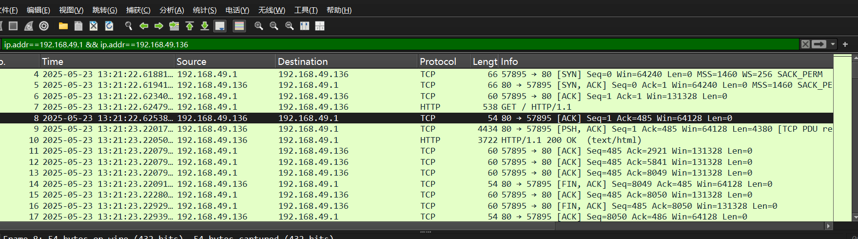 ip.addr==192.168.49.1 && ip.addr==192.168.49.136