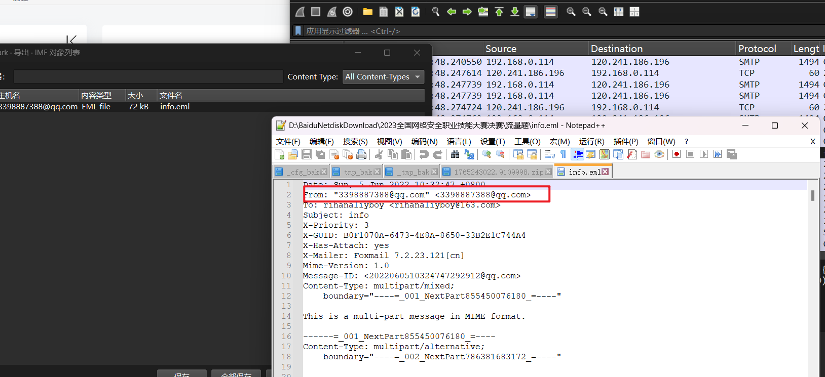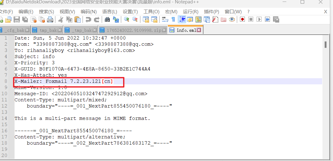 2.发件人使用的客户端软件以及版本是什么?(参考格式:abc 1.1.11.111[ab])