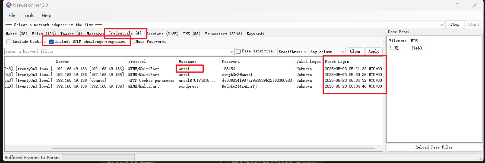 用networkminer自动解析的登录账号和密码来看 然后筛选一下时间排序