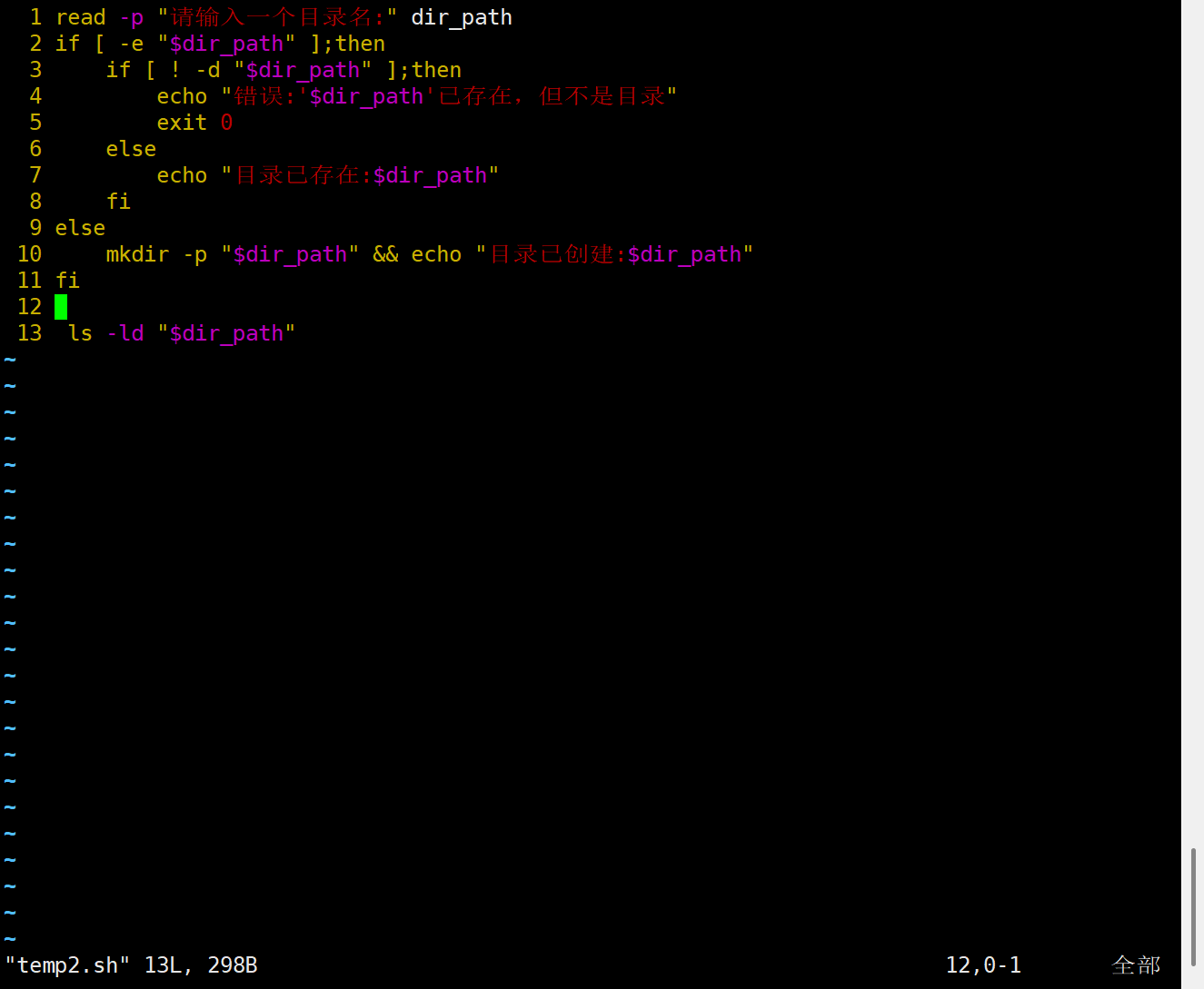 2.编写脚本temp2.sh ,程序允许输入一个目录名,判断该目录是否存在,若不存在则创建,并显示目录信息