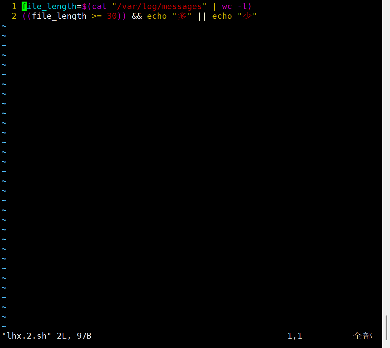 3.如果/var/log/messages文件行数大于30行,则显示"多",否则显示"少"