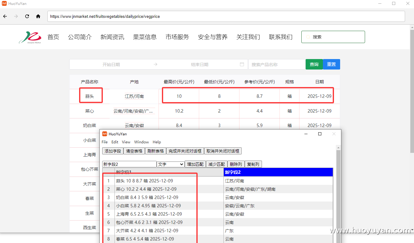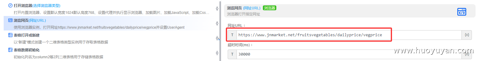组件2,浏览网页 ,输入网址URL:https://www.jnmarket.net/fruitsvegetables/dailyprice/vegprice