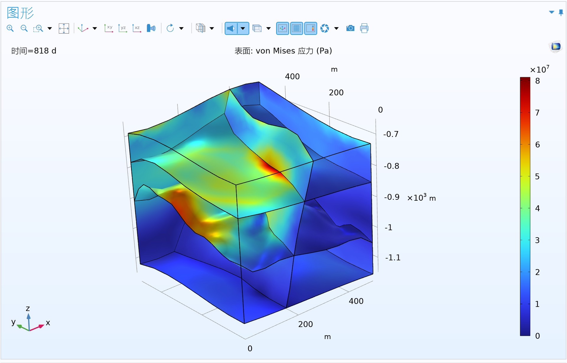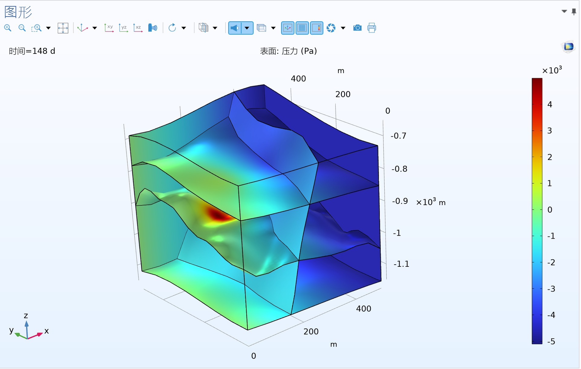 在这段代码中,我们添加了固体力学物理场,并设置了固体材料的弹性模量和泊松比等基本属性。固体力学模块的加入使得模型能够模拟岩石在热应力和流体压力作用下的变形和应力分布,这对于研究干热岩的开采和地热资源的利用至关重要。