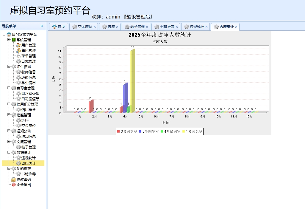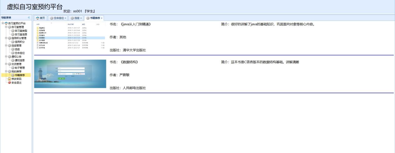 随着互联网技术的发展和人们对自主学习环境需求的增加,虚拟自习室作为一种新型学习空间应运而生。本文旨在设计并实现一个基于 SSM(Spring + SpringMVC + MyBatis)框架的虚拟自习室预约管理系统。通过eclipse作为开发工具,语言采用当前最流行的Java语言,后台框架采用SSM框架,Mysql作为数据库,tomcat为本地服务器,设计和编写自习室预约管理系统。利用最新的HTML5和CSS3技术编写网页使界面易于接受的自习室预约管理系统,从而缓解自习室占座问题。