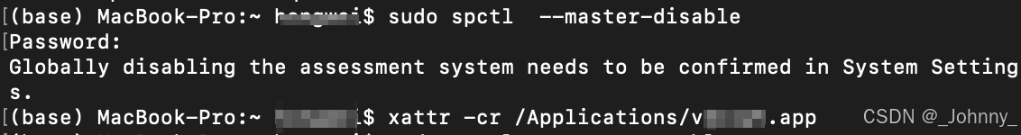 (base) MacBook-Pro:~ johnny$ sudo spctl --master-disable
