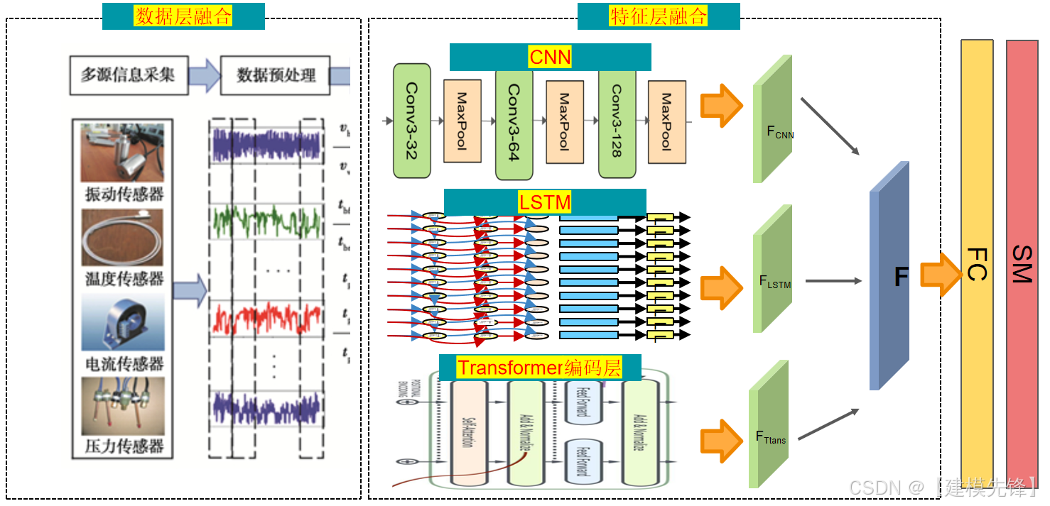 继上期推出的基于数据层融合+ 经典卷积网络的故障诊断合集, 本期继续更新:数据层融合+ CNN-LSTM-Transformer的特征层融合的故障诊断模型。