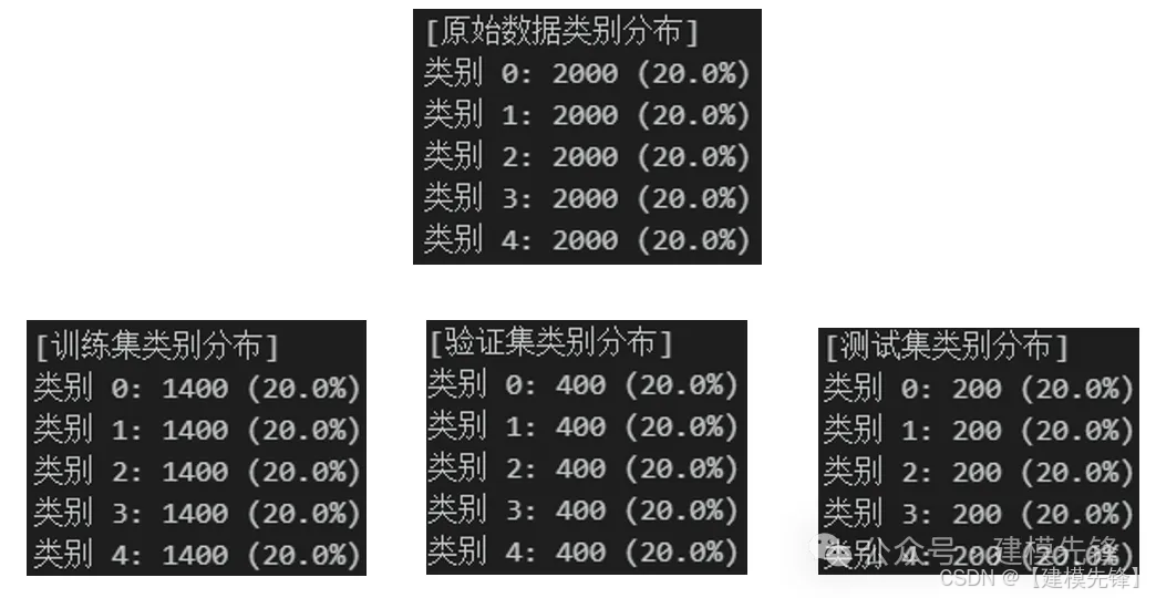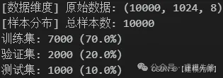 通过滑动窗口制作数据集,并按照7:2:1均匀划分训练集、验证集、测试集,最后保存数据,划分完成的数据集分布情况如下:
