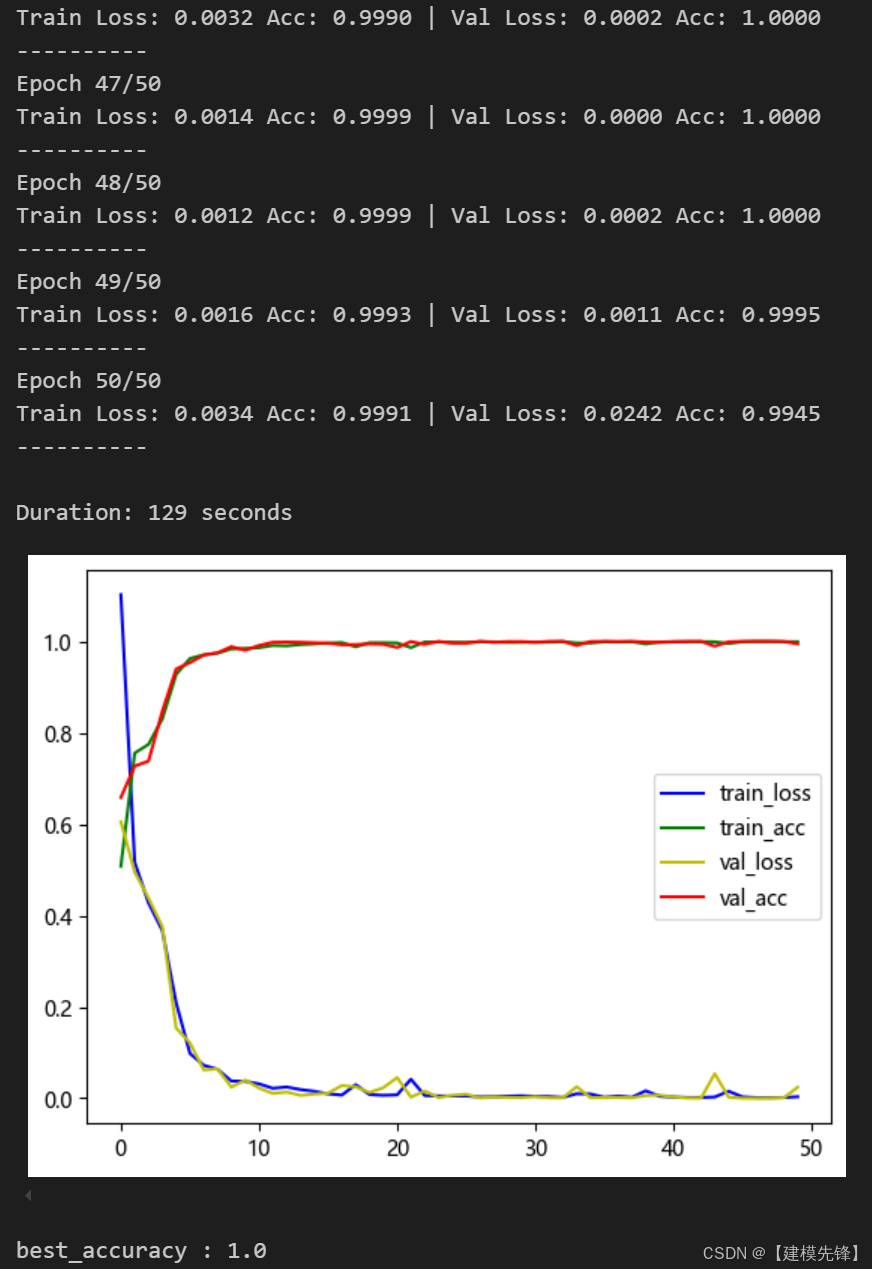50个epoch,准确率100%,用 CNN-LSTM-Transformer特征融合 网络分类效果显著,能够从多源故障信号特征中提取出对模型识别重要的特征,效果明显!