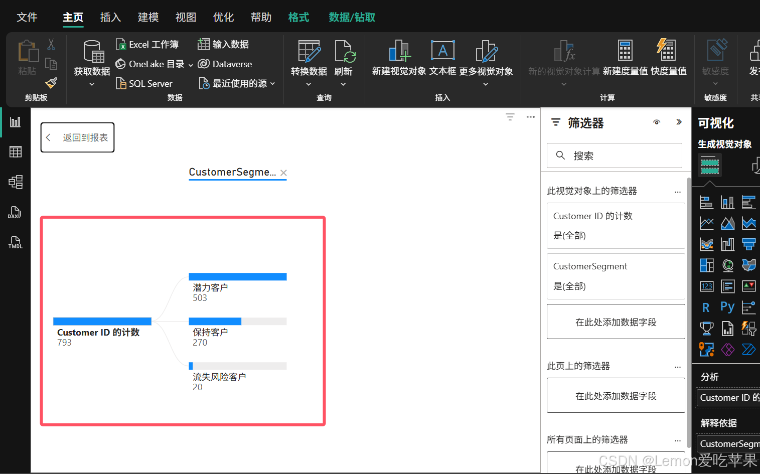可视化:客户增长趋势图、分解树、树状图、饼图