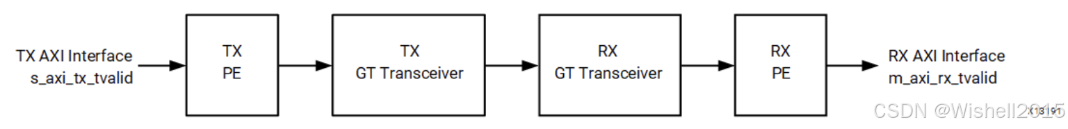 s_axi_tx_tvalid被拉低时,会在字与字之间保留空隙,这些空隙会被原样送到线路上(正在发时钟补偿字符时除外)。 - 数据到达 RX 侧后,内核立即将其送上