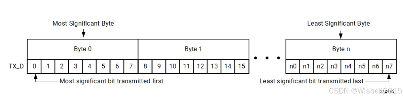 - 位级:每个字节内先传输最高有效位(MSB),后传输最低有效位(LSB)