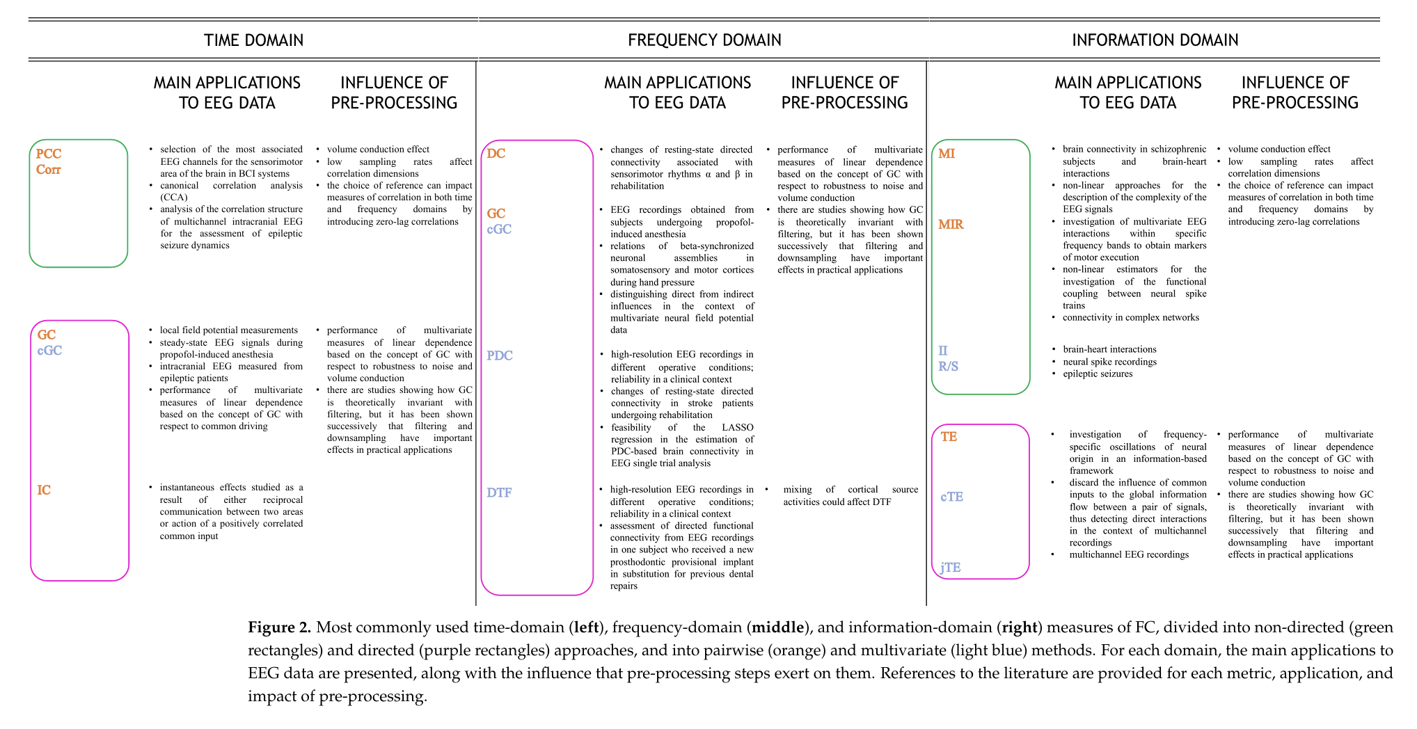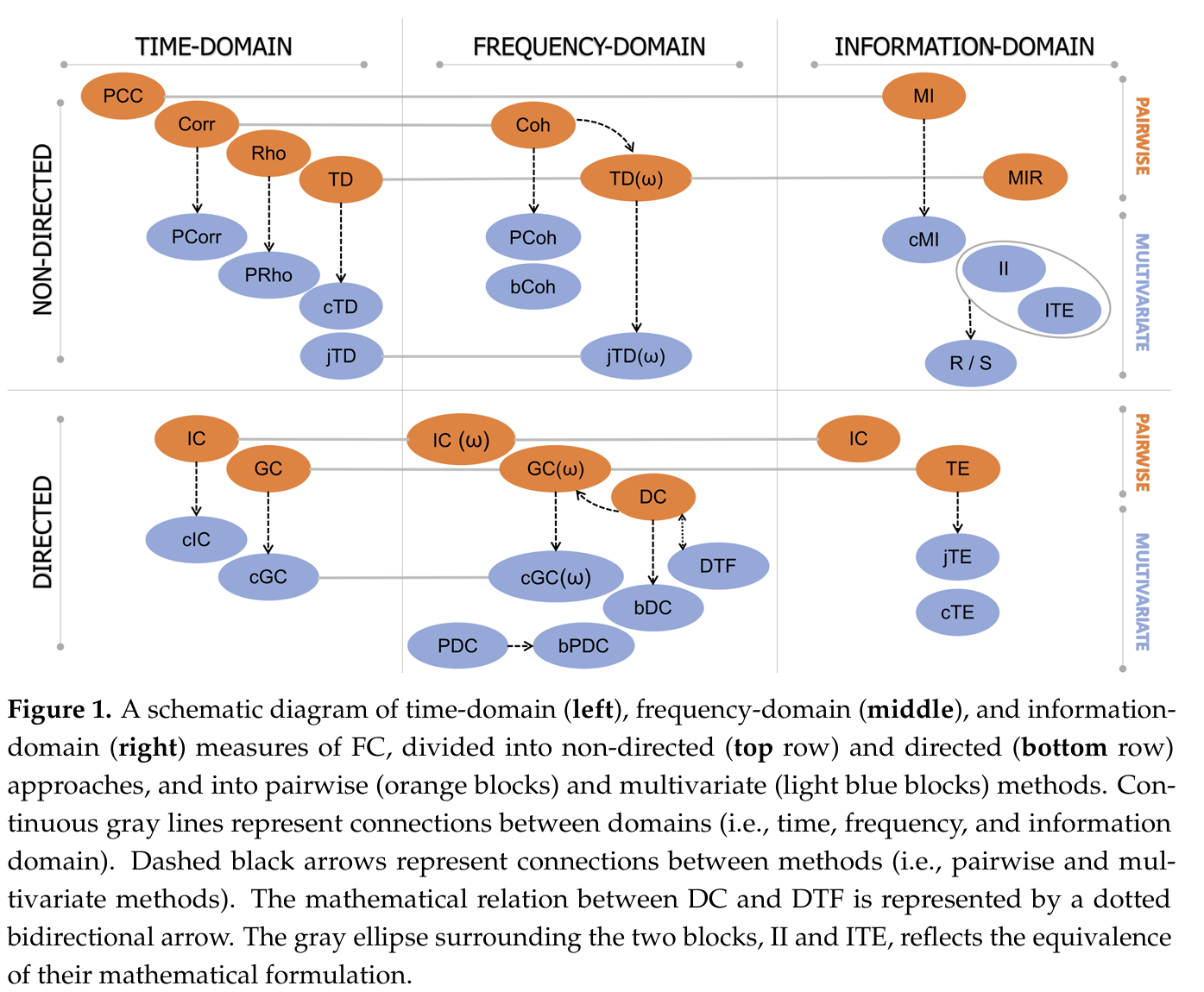 然而,面对几十种的算法(PCC, GC, DTF, PDC, TE...),我们该如何选择?这篇综述提供了一个非常清晰的分类体系,特别是对于时域(Time-Domain) 和 频域(Frequency-Domain) 的区分至关重要。