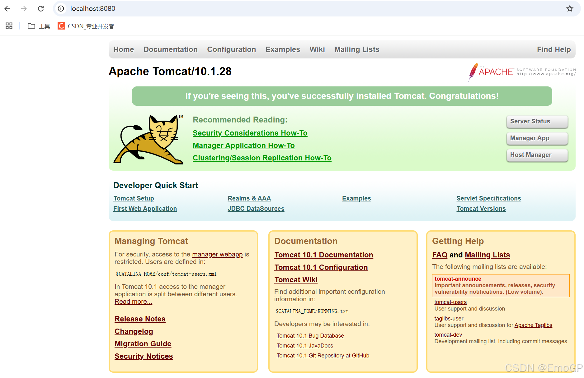 我这里tomcat版本是10.1.28,Java版本是17.0.8