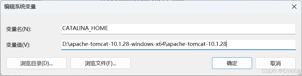 这里一般不配置为TOMCAT_HOME,而是CATALINA_HOME,