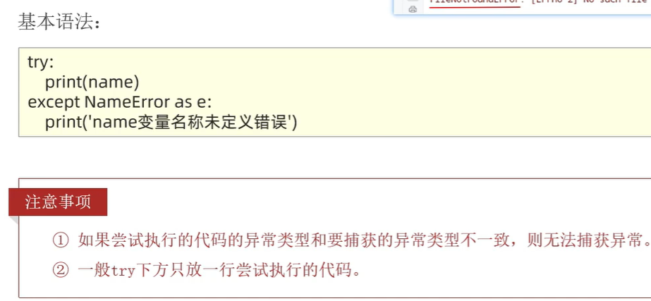 可以针对特定的异常做捕获,如果出现的异常是我们所写的,则捕获成功,如果不是,则无法捕获