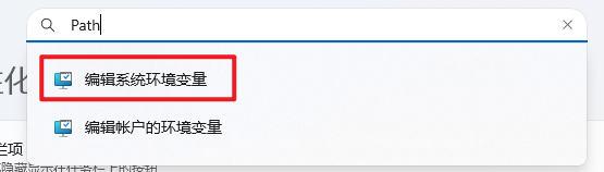 搜索"Path",点击"编辑系统环境变量"