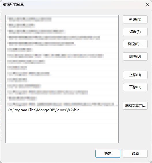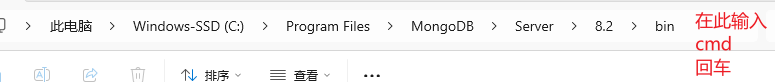 找到之前的那个地址,也就是MongoDB安装好后的bin文件夹的位置,复制地址,添加到最后