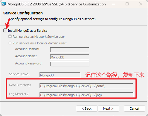 - 如果没有安装过MongoDB,这一步勾上,点击Next