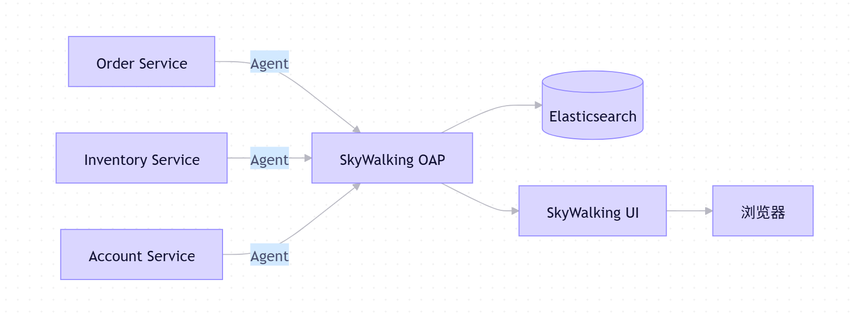 | OAP Server | 接收、分析、存储追踪数据 | 支持 H2 / MySQL / Elasticsearch 存储 |