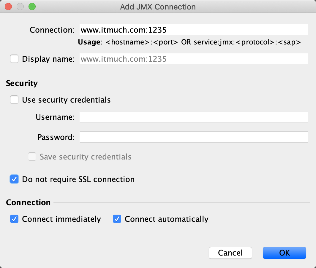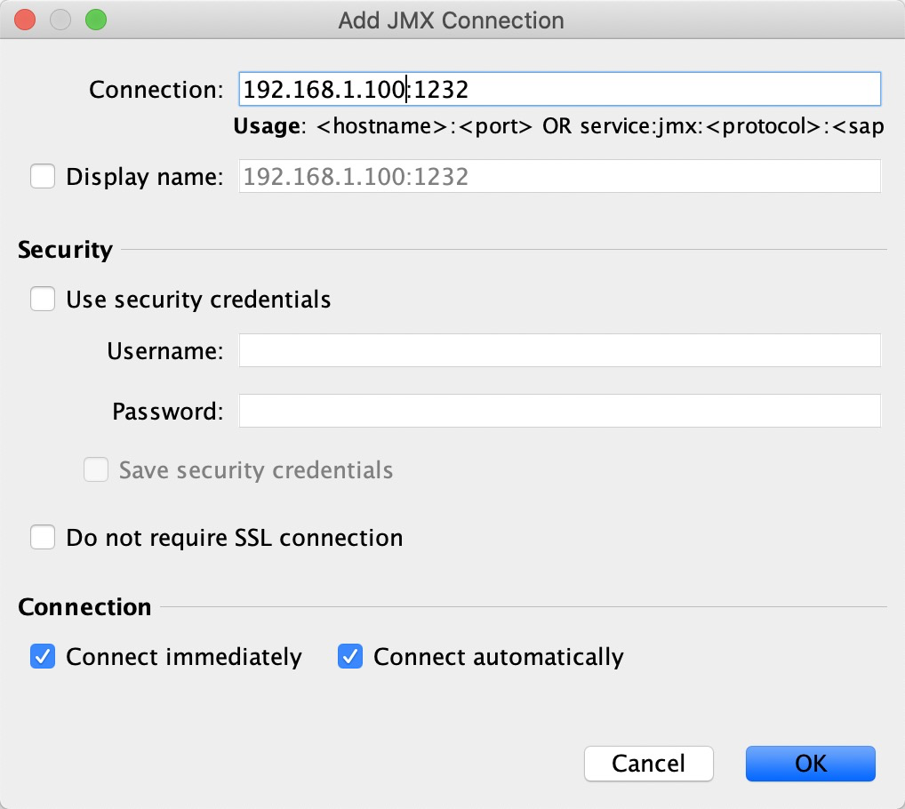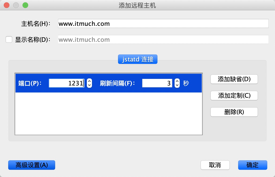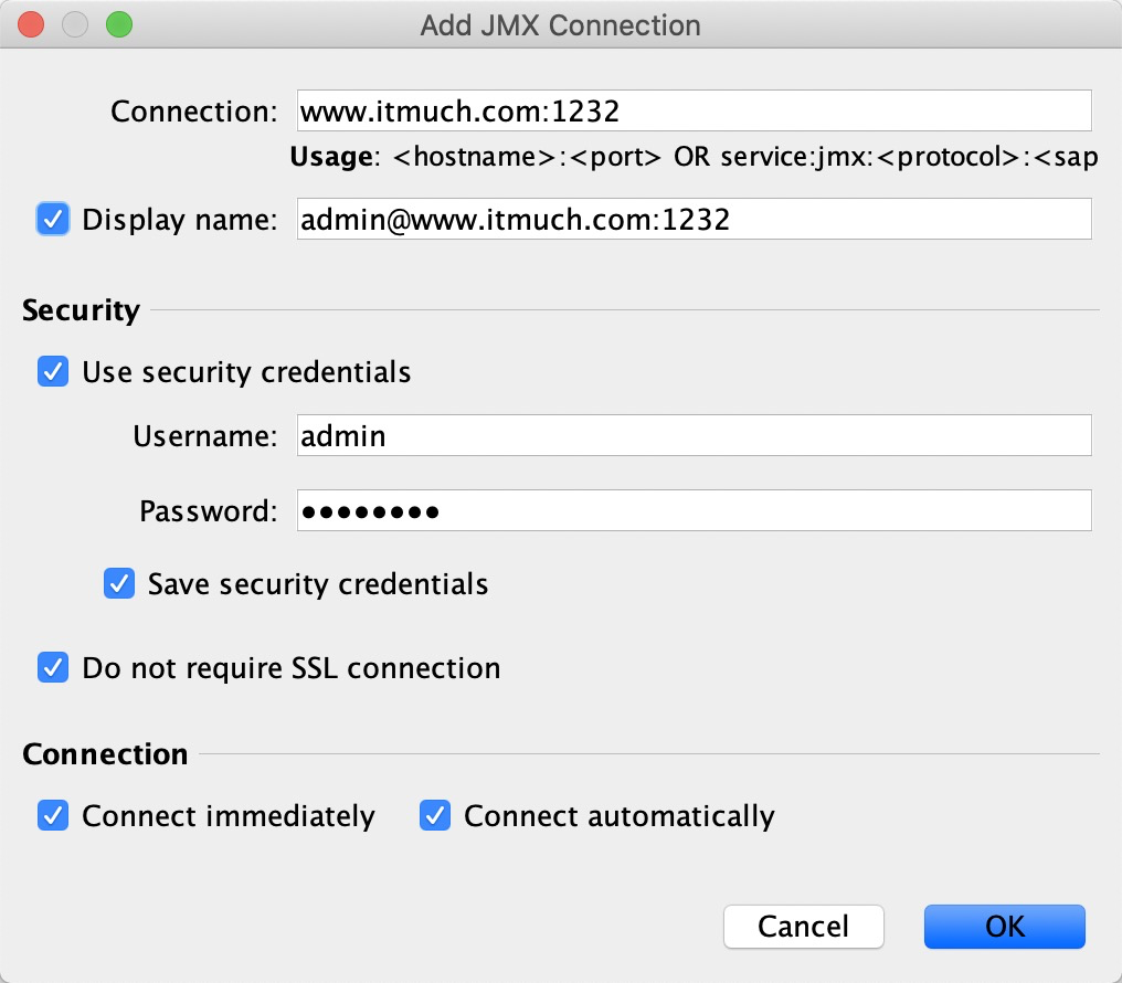 File - Add JMX Connection,填入类似如图的信息即可: