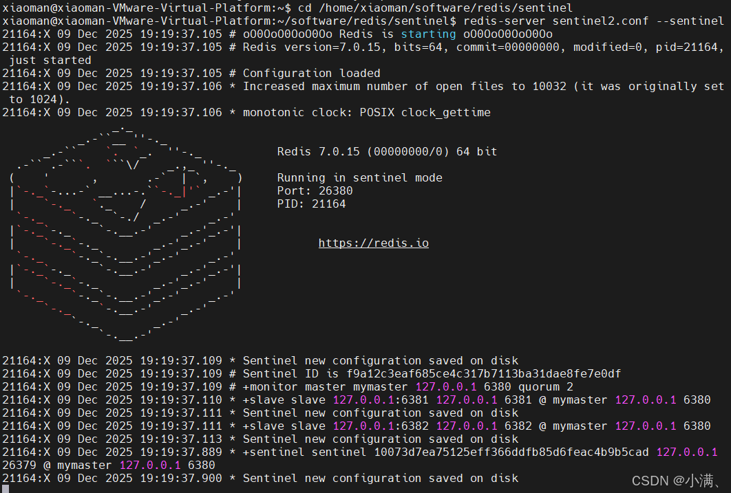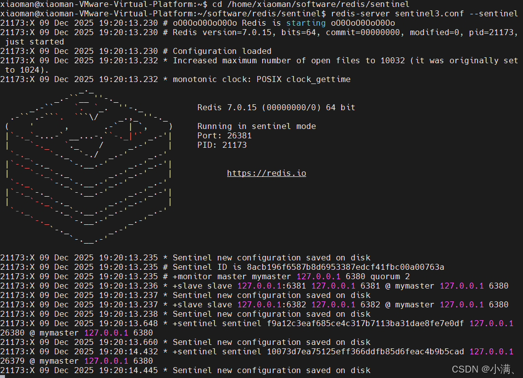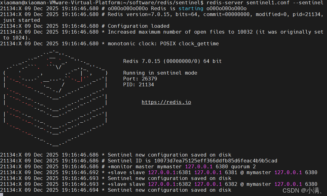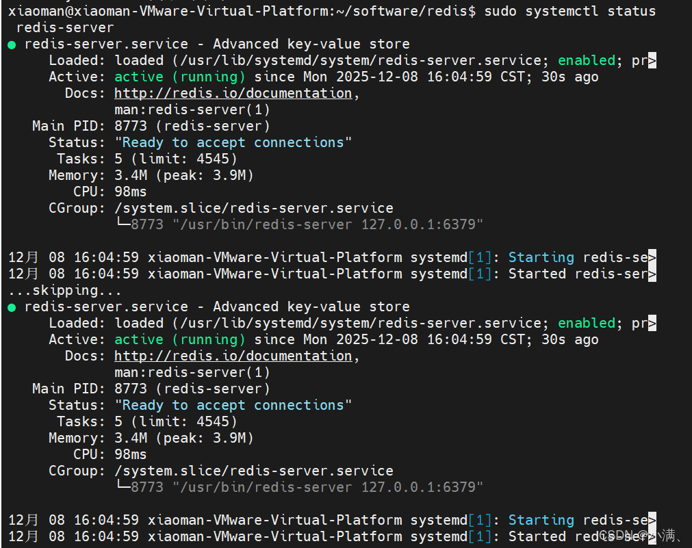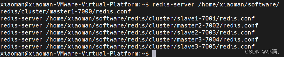 redis-server /home/xiaoman/software/redis/cluster/master1-7000/redis.conf