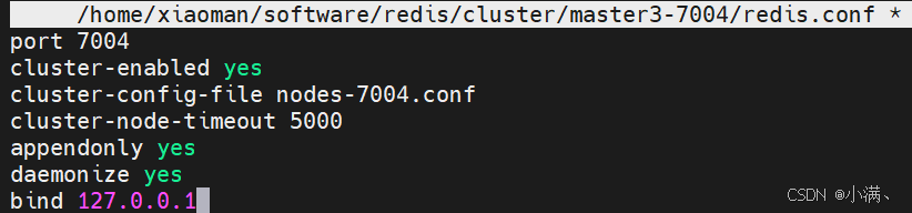 redis-server /home/xiaoman/software/redis/cluster/master3-7004/redis.conf